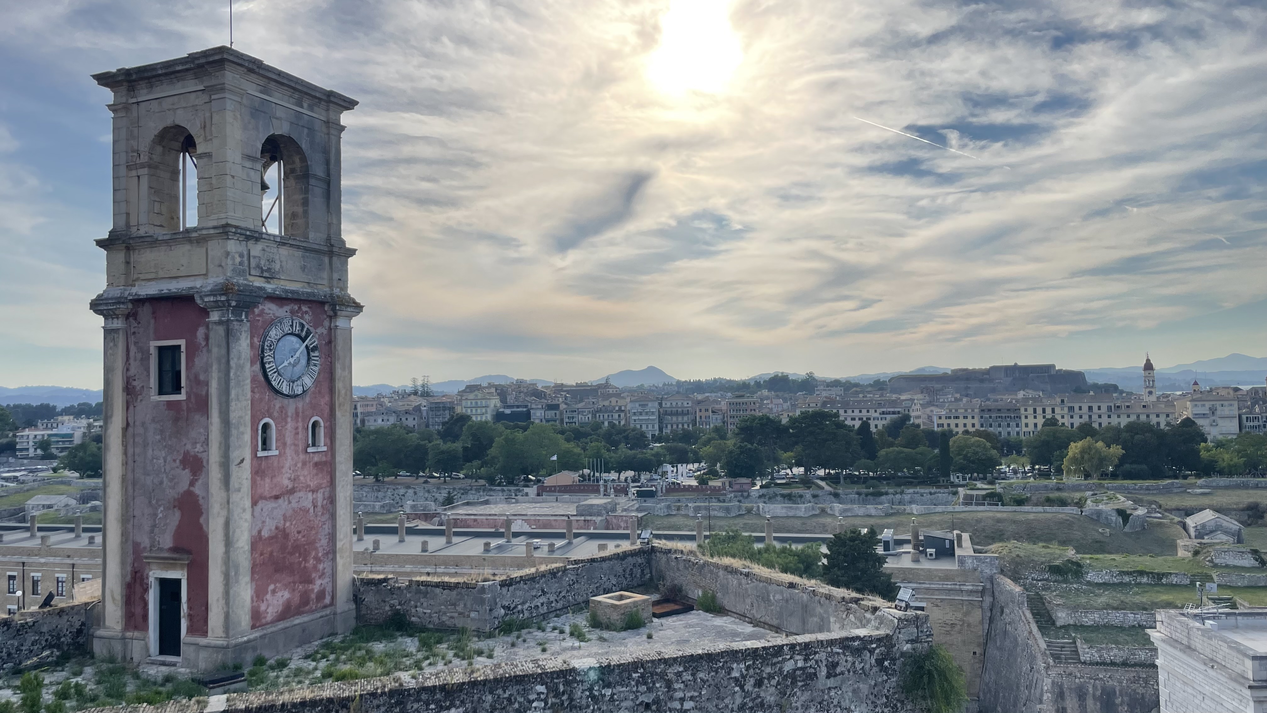 On se promène dans les petites rues du vieux Kerkyra. C’est super joli, il y a des petites venelles colorées et des pavés blanc. Il fait chaud. On veut voir la mer. Ouf elle est bien transparente et turquoise, Nathan est content. On se baignera peut être demain ! On se rafraîchit plutôt avec une glace.
