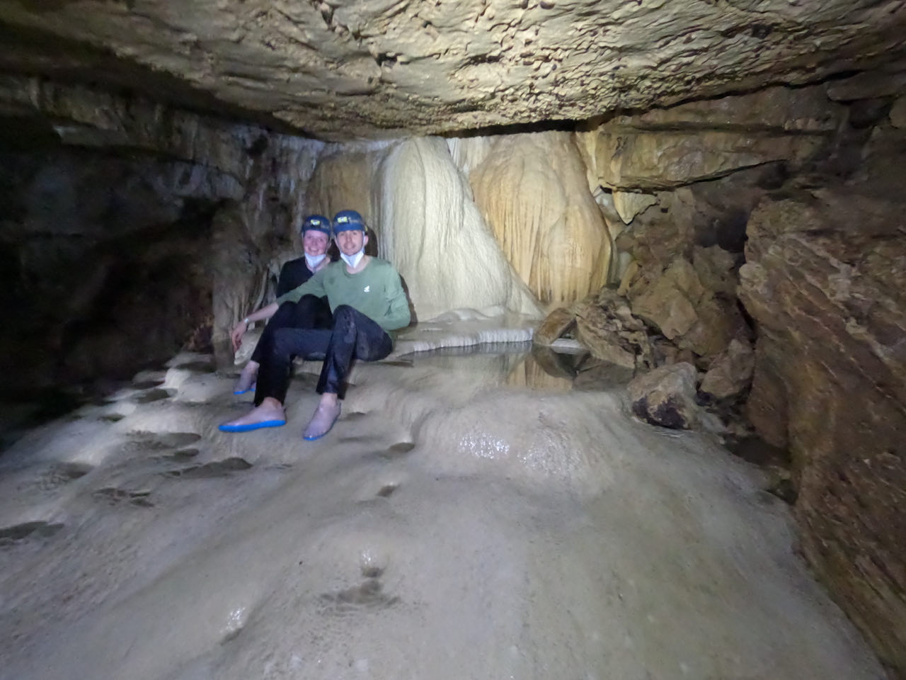 La GoPro de papa nous accompagne pour documenter cette aventure de 2h ! Dans la grotte, nous voyons des formations géologiques vieilles de 20 millions d’années. Il y a aussi une petite cascade à l’intérieur de la caverne. Il faut quand même être en bonne condition physique et ne pas être trop gros pour suivre le parcours. Il y a également des passages optionnels très étroits ou un peu immergés.