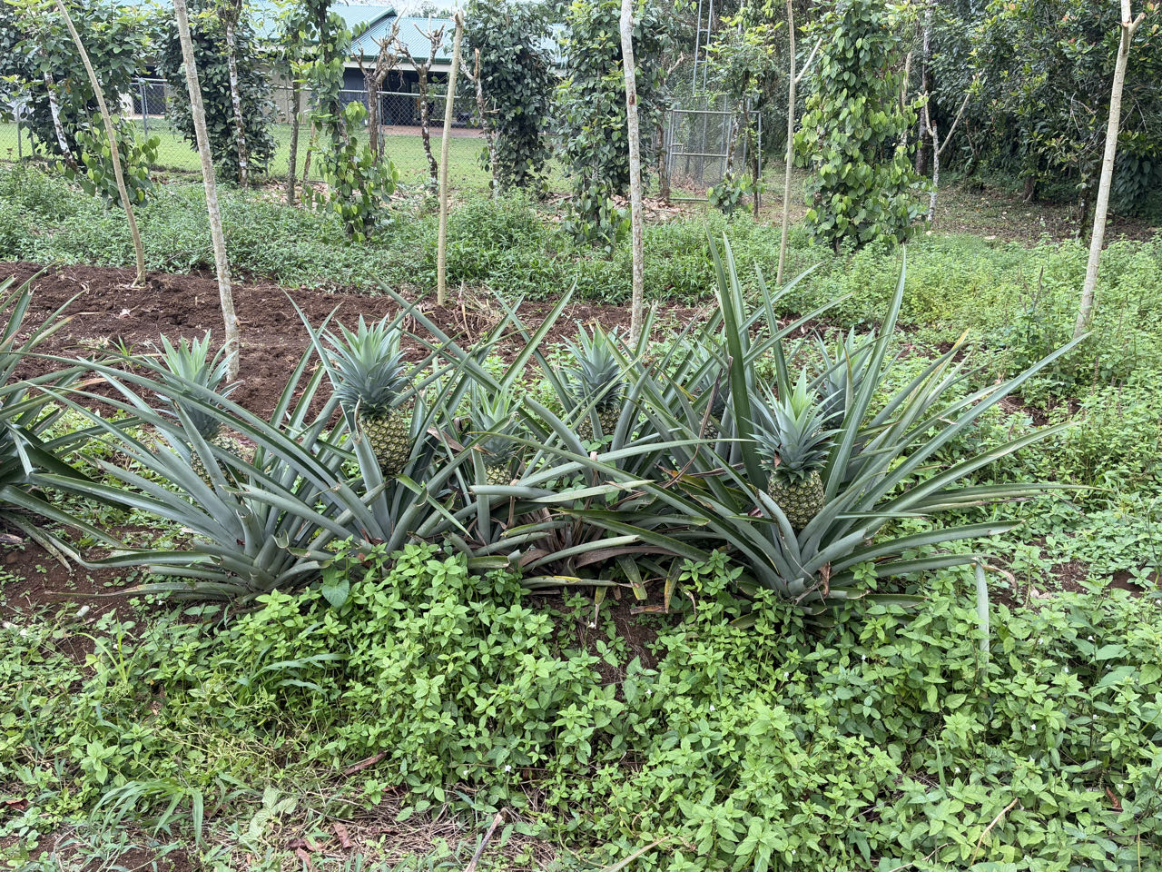 Tout est cultivé en petite quantité (en permaculture) juste pour les besoins de la famille et les visiteurs comme nous.