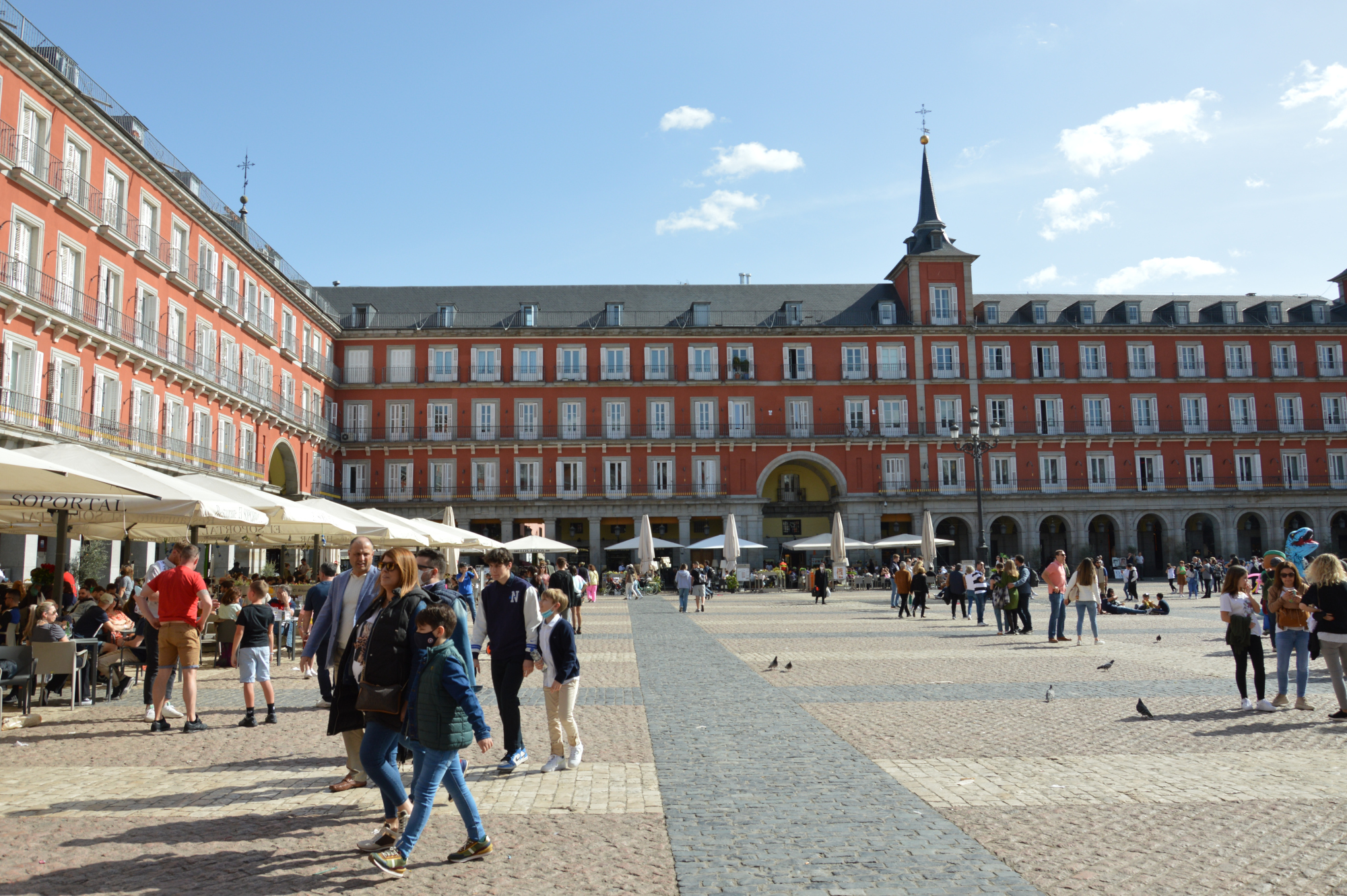 nous visitons la place Mayor, elle est jolie mais c’est une place à touristes. Il y a des restaurants tout autour et des attrapes touriste au centre. On dirait un mélange du quartier St Michel et de la place du tertre. On ira sûrement pas manger à cet endroit .