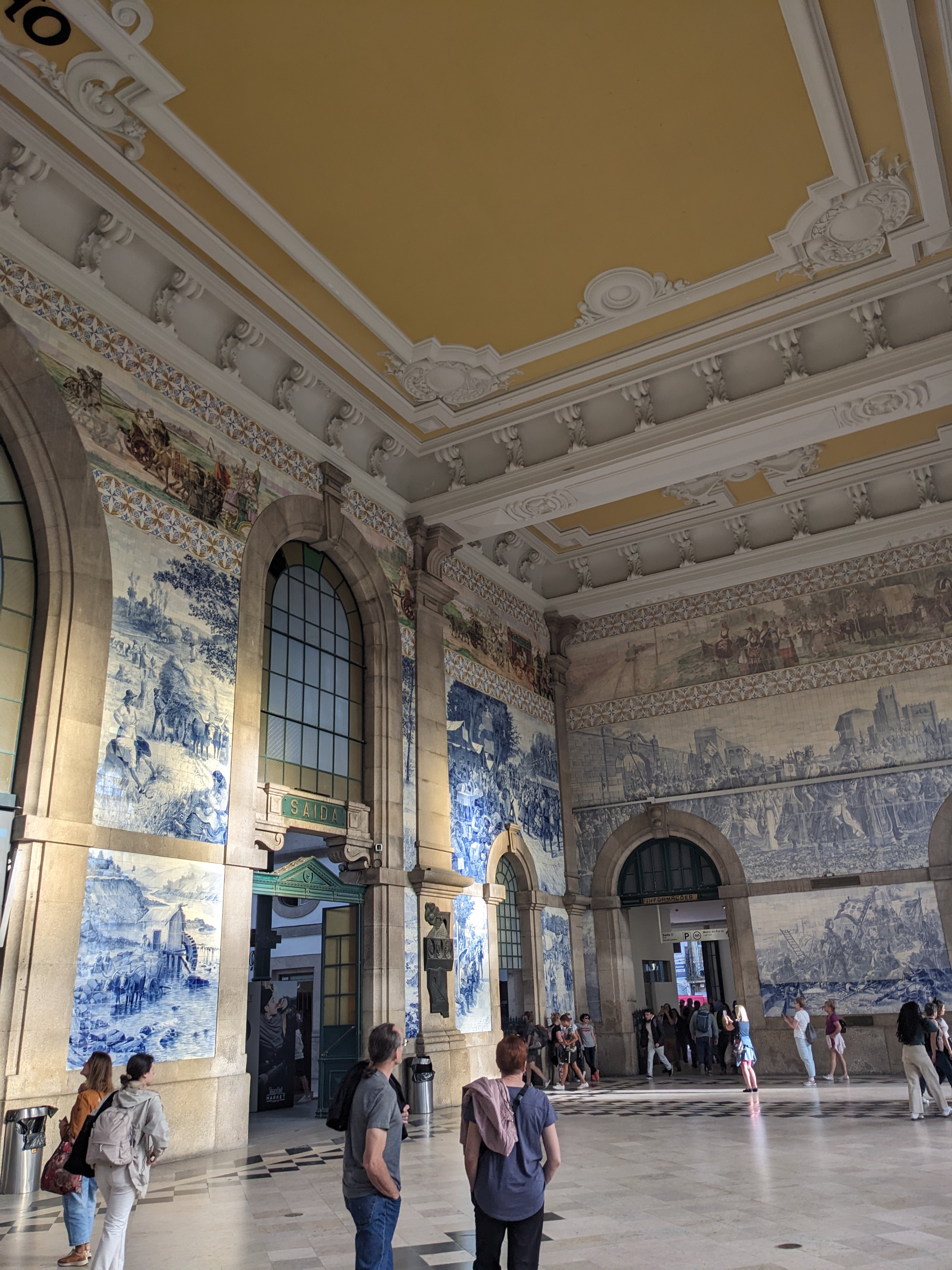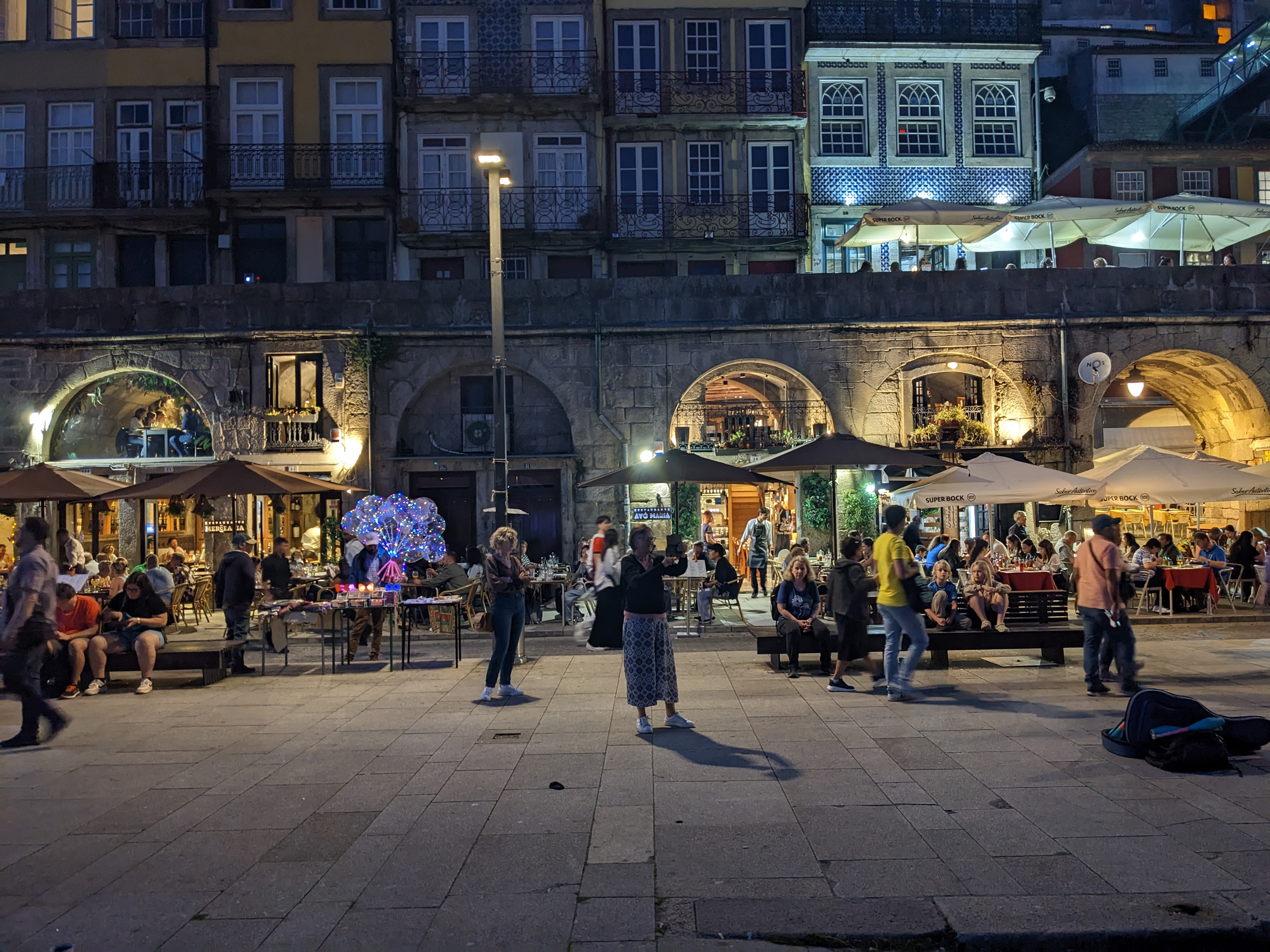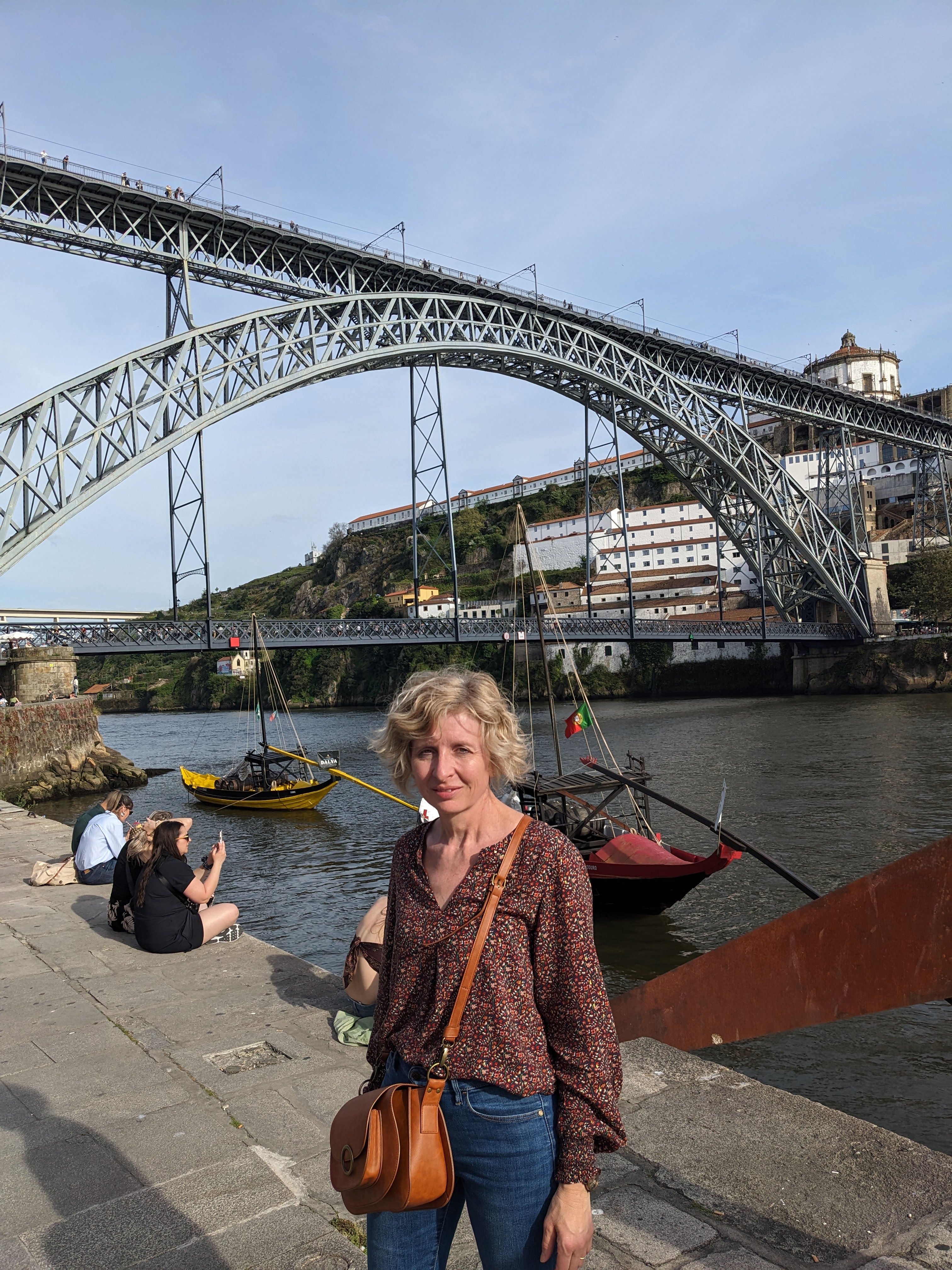 Nous avons marché tout en haut à coté des voies de tram et nous sommes revenu par le niveau inférieur. Nous avons ensuite flâné sur les quais dans le quartier Ribeira. Il y a des touristes et c’est animé. Nous avons mangé Italien sur une petite place sympa.