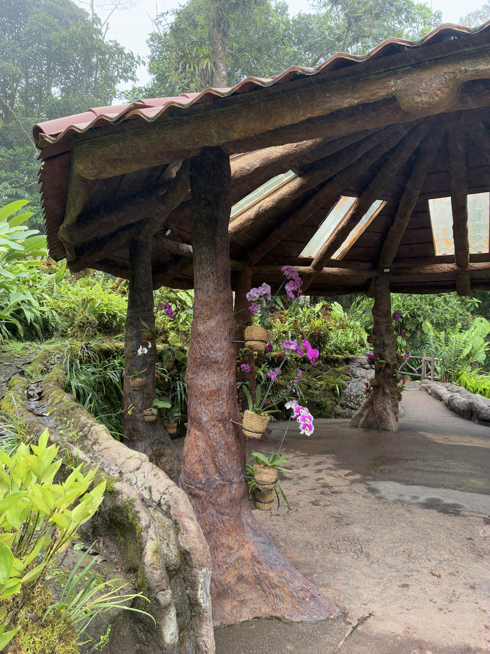 On termine par le jardins de plantes et d’orchidées, puis par les grenouilles. Nous les avions déjà repérées en liberté ces derniers jours. J’ai réussi à faire de très jolies photos des animaux avec mon appareil, je n’ai pas de quoi les poster ici. On a beaucoup aimé cette partie jardins et animaux, c’est très bien aménagé et très beau.