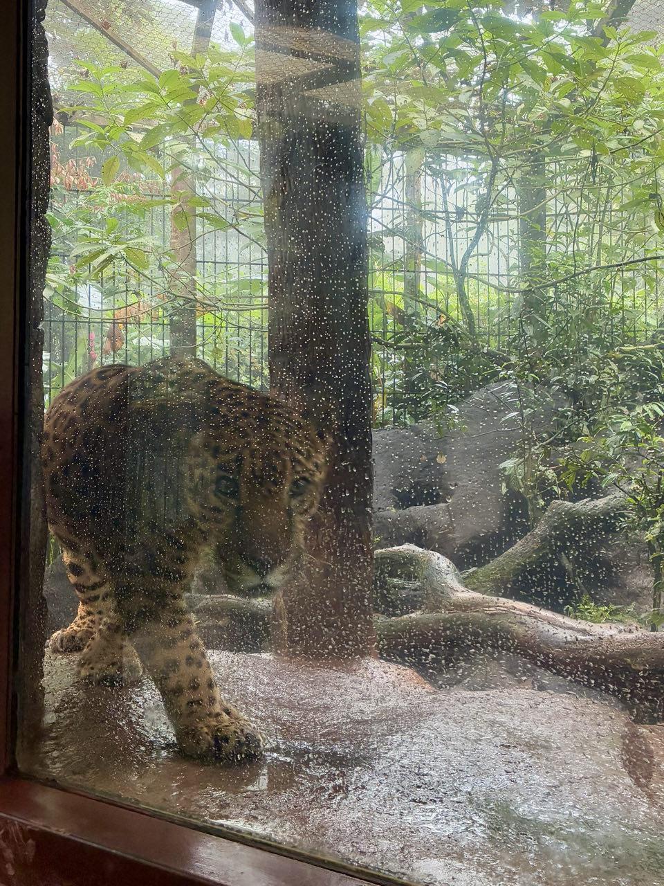 On continue vers les singes, les serpents, puis vers les félins. On voit de très près un jaguar qui prend presque la pose.