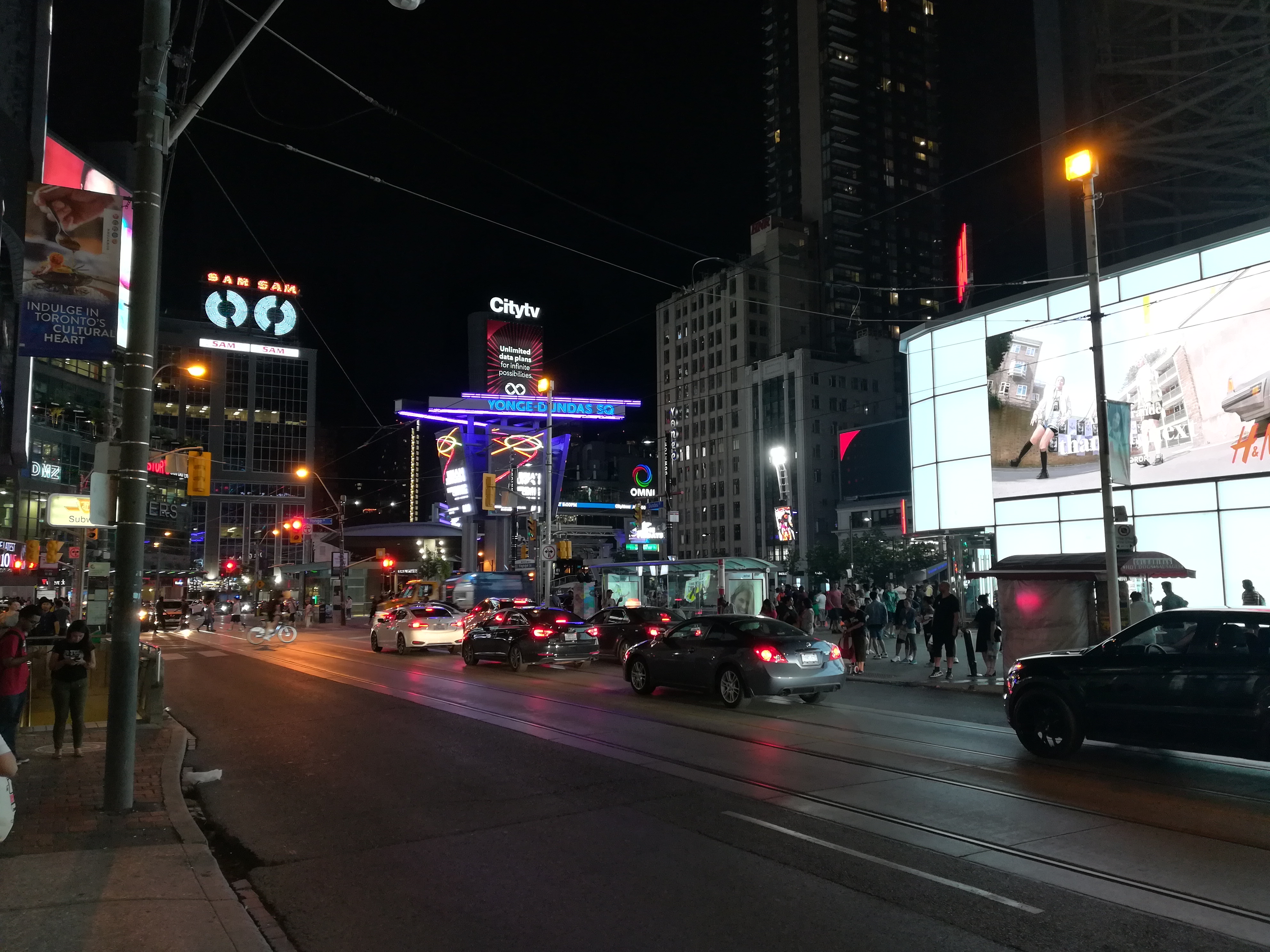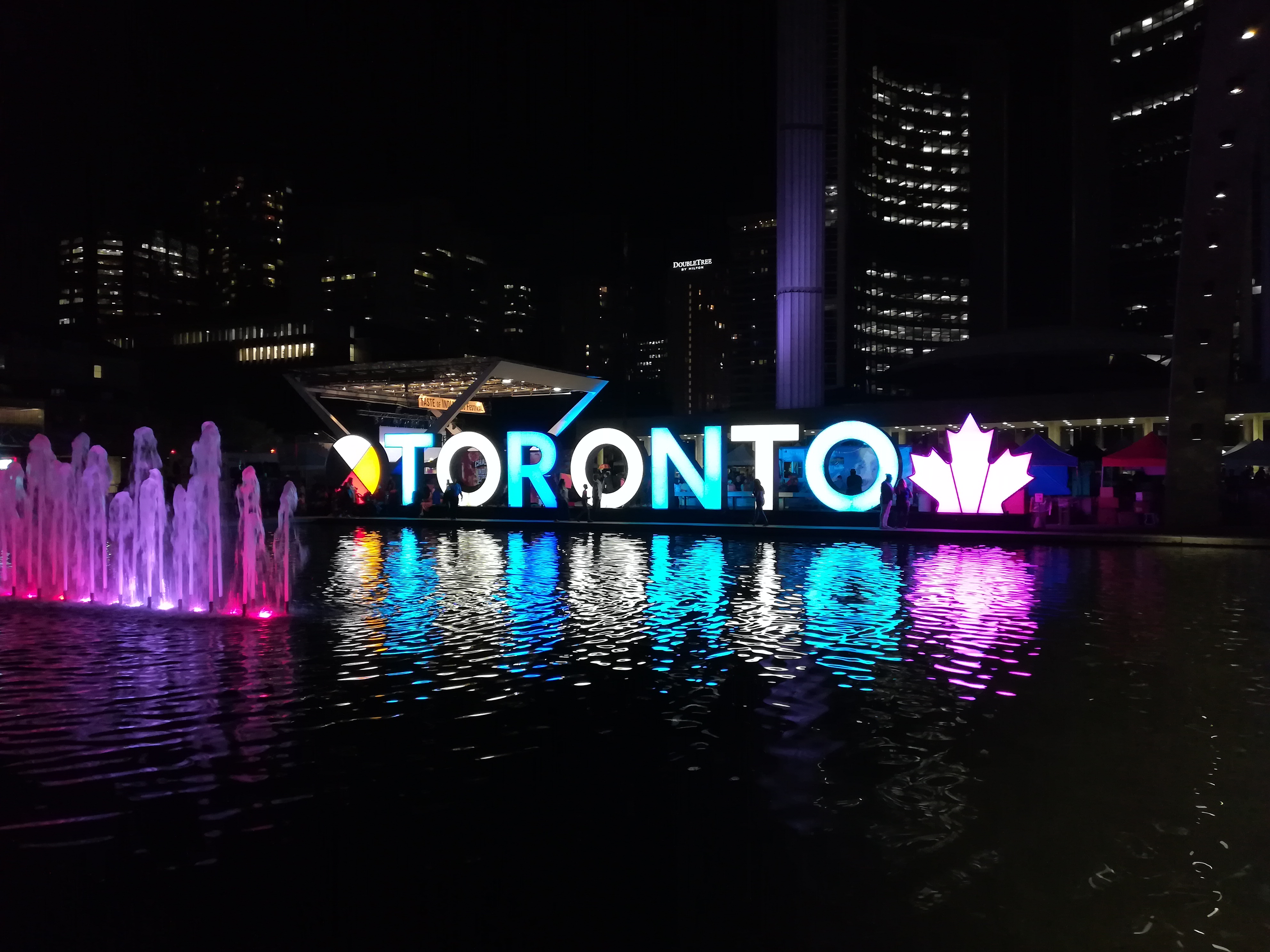 Enfin, nous terminons la soirée en arpentant les rues jusqu’à Dondas Square. Ça ressemble à Times Square de New York ! Ça valait un petit détour. Et pour terminer nous arrivons par hasard près de l’hôtel de ville où se trouve le "Toronto sign". Encore une belle place à Toronto et de belles photos à faire !