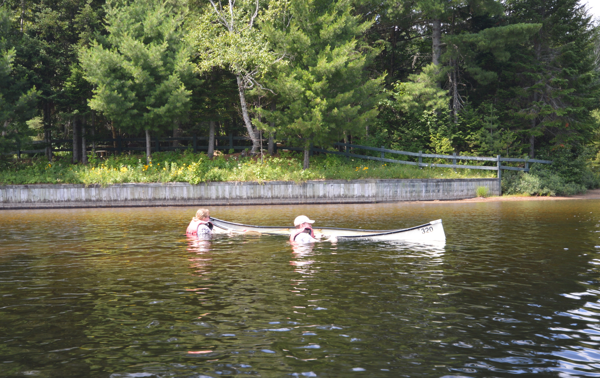 Nous continuons notre randonnée en canoë pendant une heure, le paysage est magnifique ! Bientôt on sera tout musclés avec tout ce qu’on a pagayé ! On doit même porter notre canoë pour passer un barrage de castors.