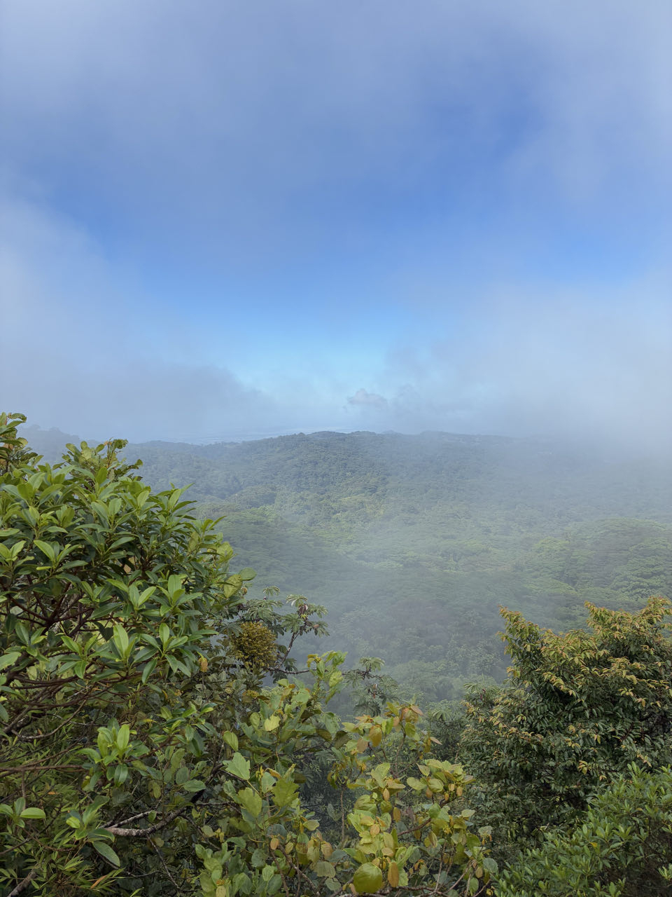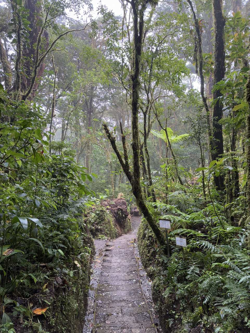 À la fin de notre visite, on se balade encore 1h sur les sentiers de la réserve. Les nuages donnent un côté mystique à la forêt, mais nous empêchent de profiter des points de vue