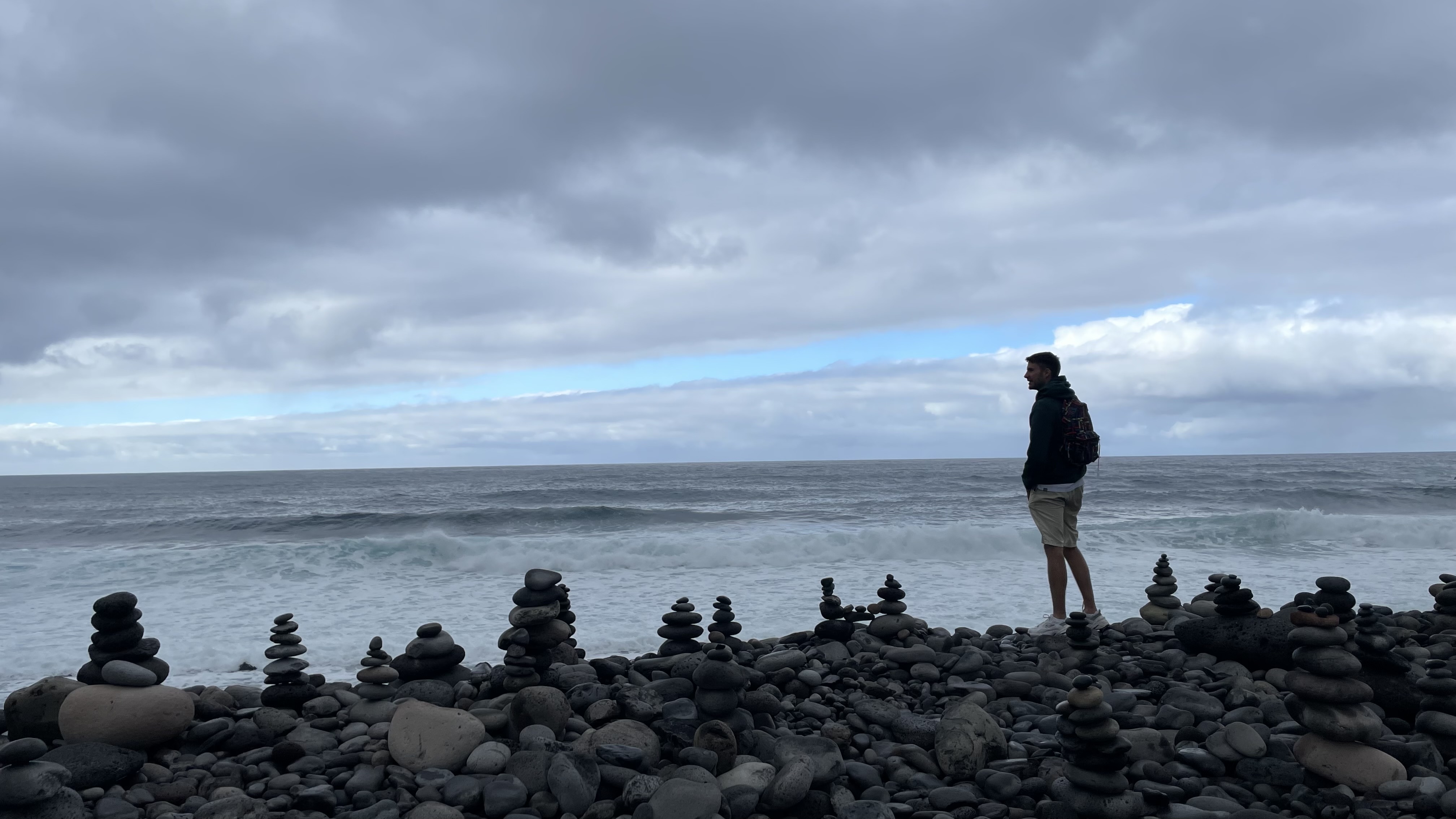 Nous arrivons à Sao Vicente sous une pluie fine. J’enfile un jeans et un pull pour la premier fois. On s’arrête regarder les grands vagues au bord de mer, puis on monte voir une église en hauteur qui nous intrigue. La vue y est superbe, le décor est complètement différent de ce qu’on a vu jusqu’à présent, on trouve que ça a des airs de Cambodge