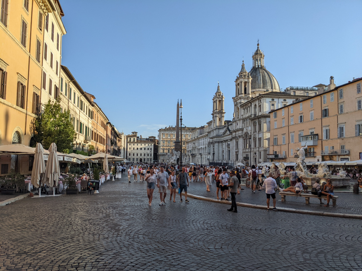 L’appart est tout près de la place Navone qui donne sur une rue animée par les restaurants. Il est assez grand pour nous cinq.
