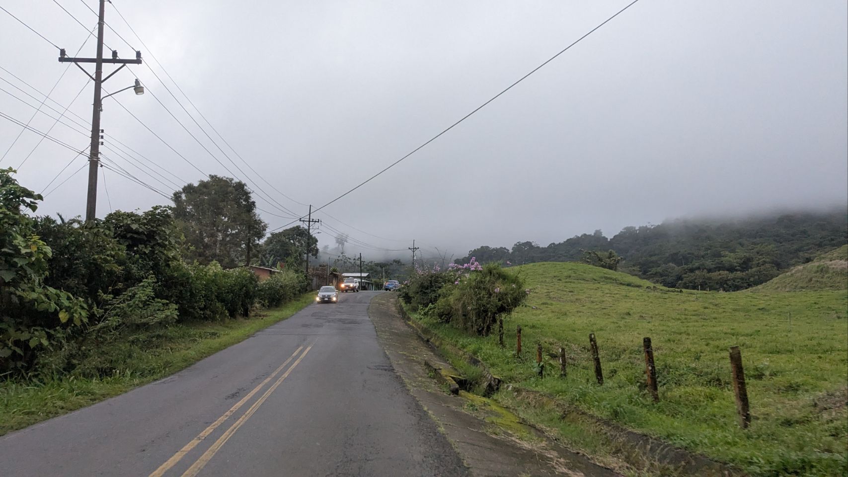 Nous attaquons la seconde partie de la route. Nous sommes en altitude et les nuages nous entourent. La route devient assez compliquée, beaucoup d’épingles, du monde et une visibilité très réduite !