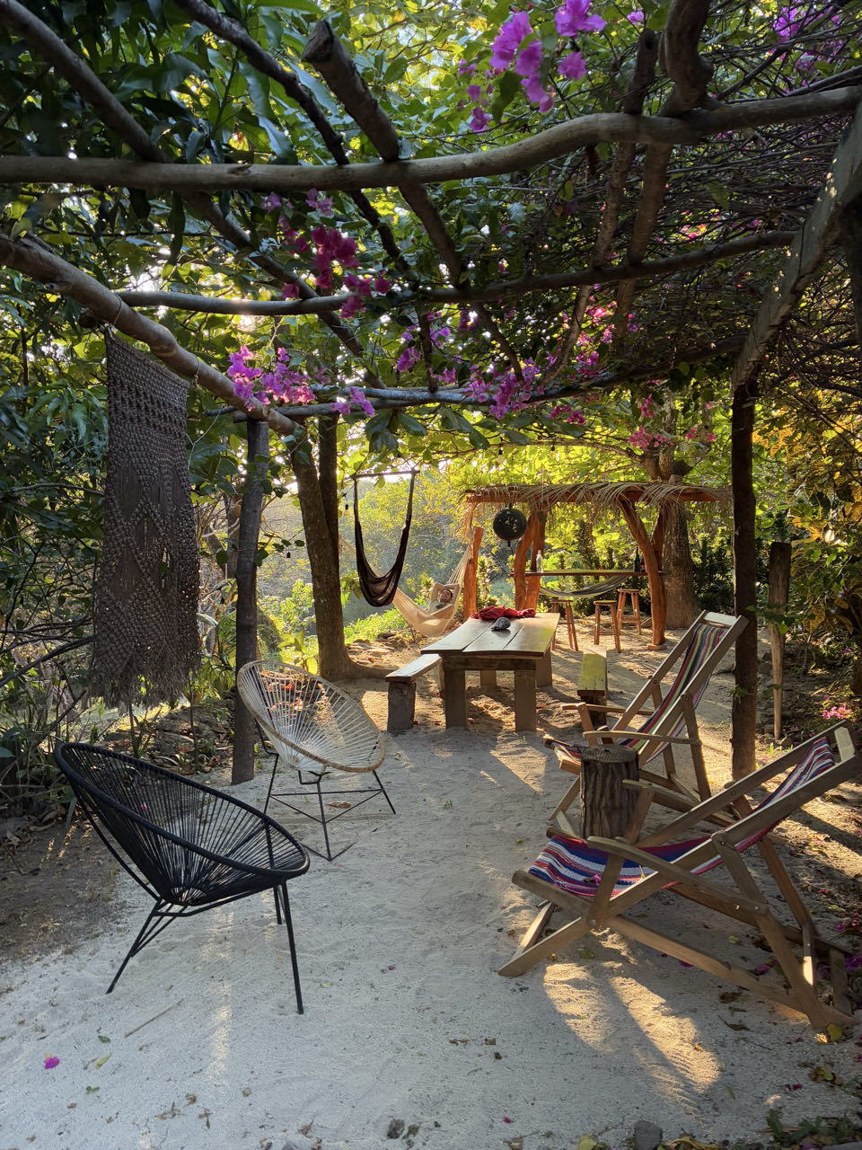 Cet après midi, on reste se détendre au lodge. Ils ont un immense jardin dans lequel sont éparpillées nos petites cabanes container. À côté de la maison principale, il y a un coin détente sympa avec hamacs et une piscine naturelle. On y reste jusqu’à la tombée de la nuit.