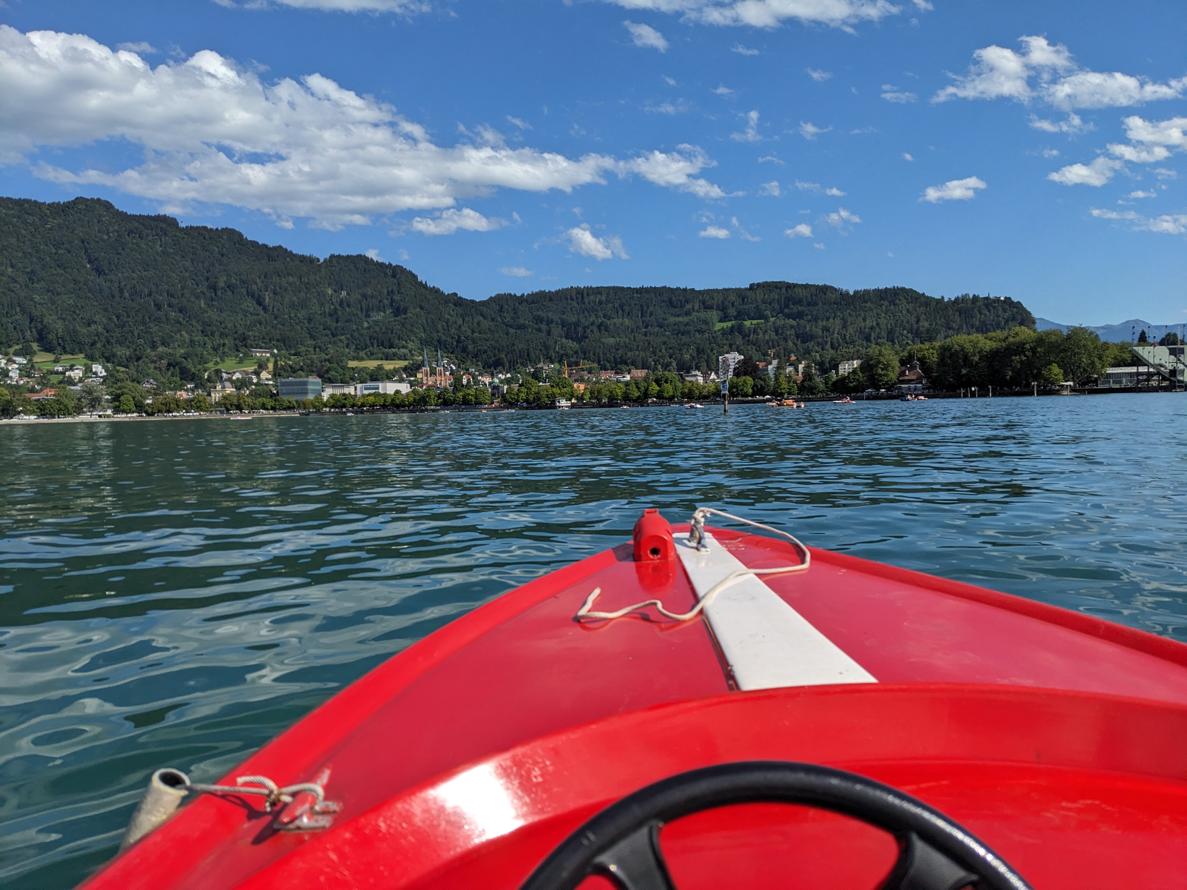 Nous faisons le retour par une escale à Bregenz, une ville située au bord du lac de Constance. Il y a beaucoup de monde sur la route et c’est très fatiguant.