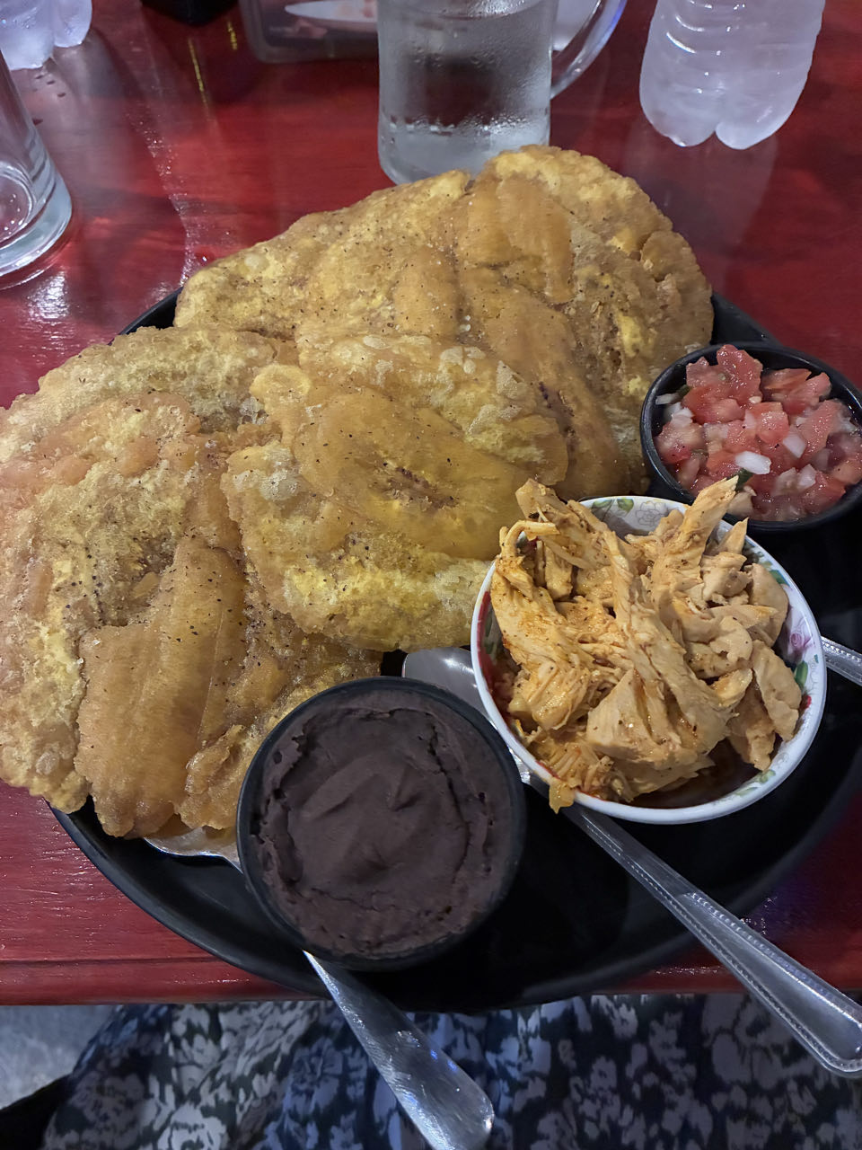 Des véritables tacos pour Nathan, et des galettes de bananes salées pour moi. C’était excellent, vraiment pas cher (9$/pers), et l’ambiance très sympa avec de la musique espagnole.