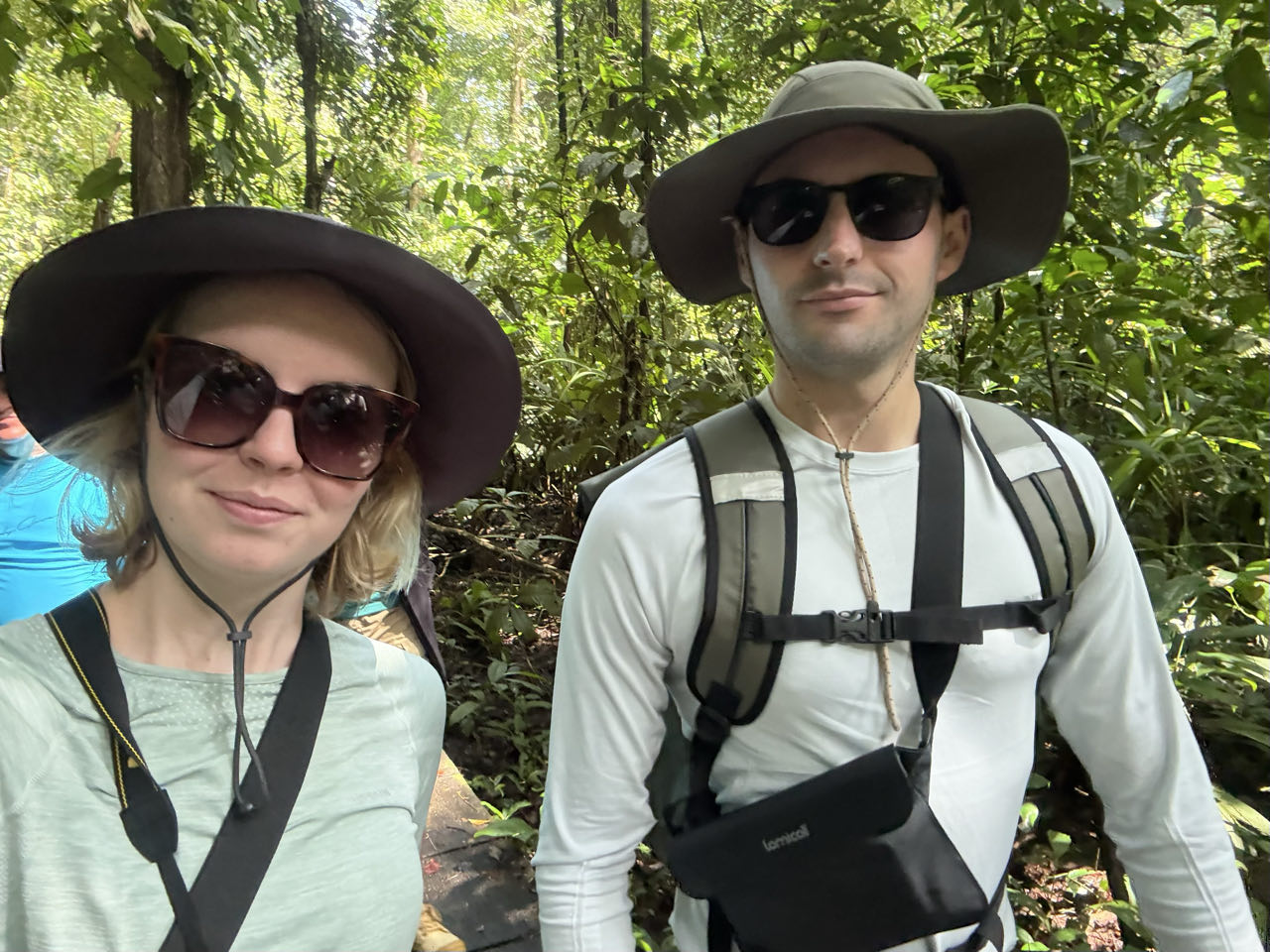 On marche sur un sentier bien balisé et nous voyons nos premiers animaux : paresseux, singes et chauve souris.