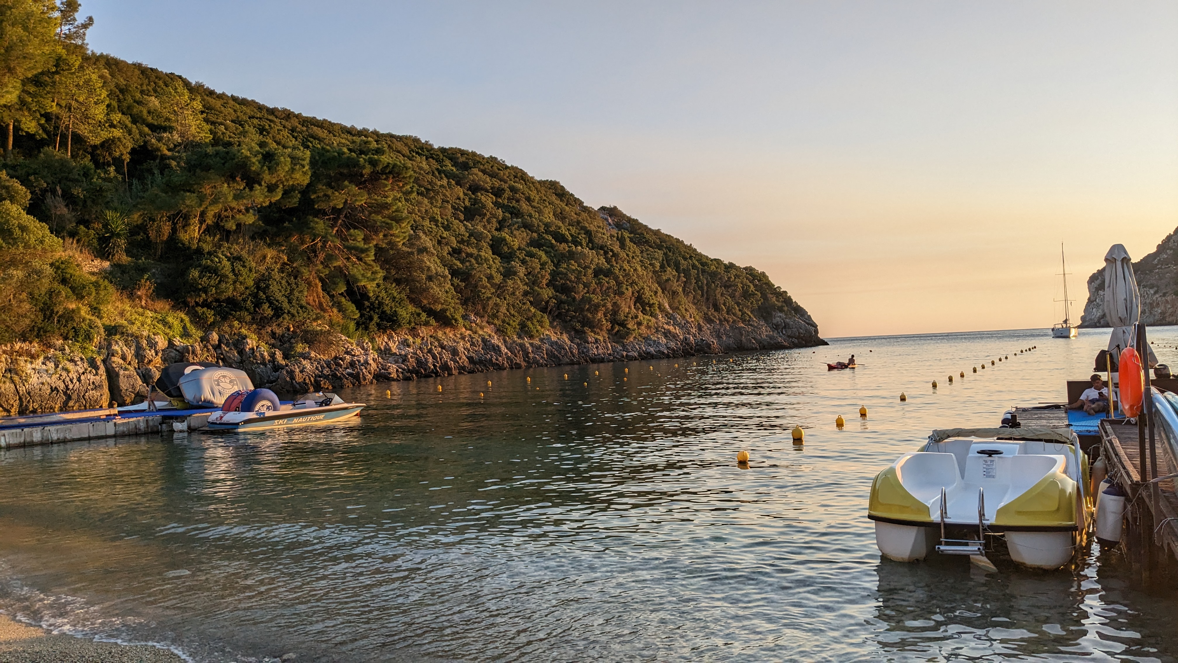 Aujourd’hui on décide de profiter pleinement de la piscine en y passant la matinée. Elle est assez grande et profonde ce qui nous permet de bien nous amuser. On fait tout de même attention au soleil parce qu’il fait tout de même chaud. Après un repas pique nique a l’appartement on décide d’aller une dernière fois à la plage de Paleostritska, plage où on n’avait pas pu se baigner a cause du mauvais temps au début du séjour.