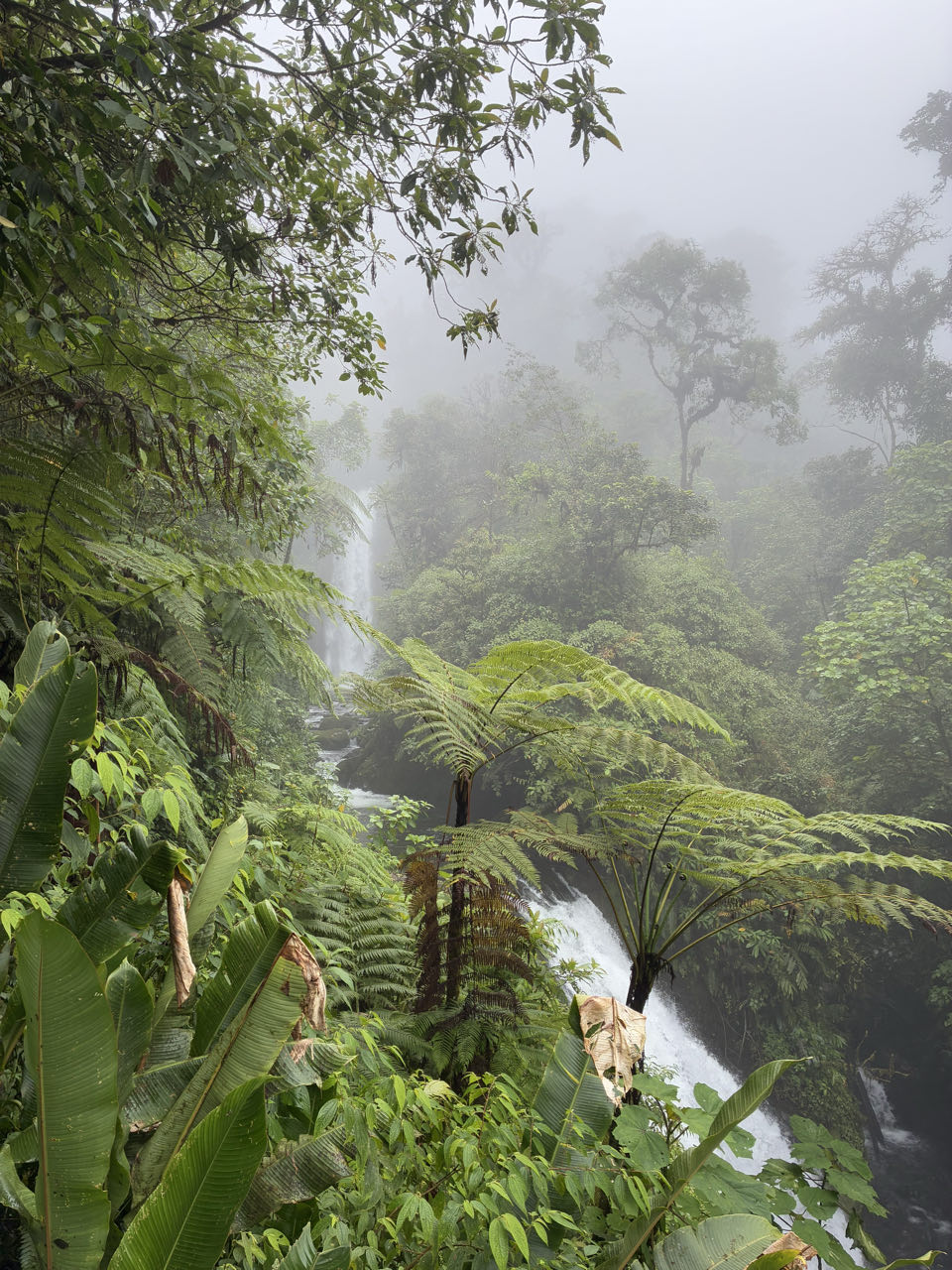 On poursuit avec le sentier des cascades. Un chemin aménagé descend dans la forêt tropicale, et on voit les 5 cascades se succéder. Elles font entre 20m et 37m. On se sent vraiment au milieu de la nature, on apprécie beaucoup. En bas de la balade, un shuttle bus nous remonte à l’entrée du parc. Il emprunte le même chemin de lacets un peu chaotique que vous avions pris la veille.