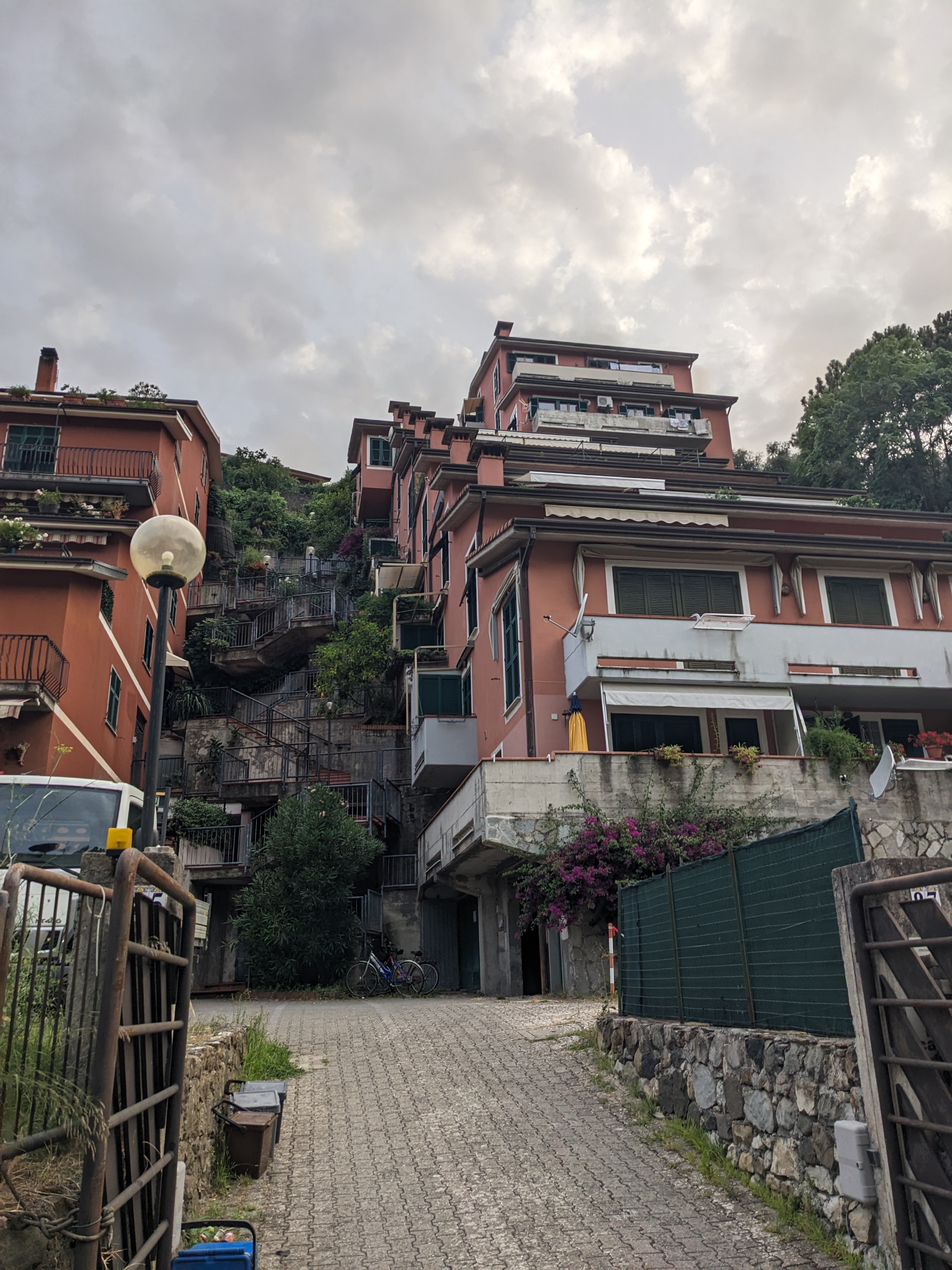 On arrive a Monterosso, sous un ciel couvert mais sans pluie. Il fait même très chaud.