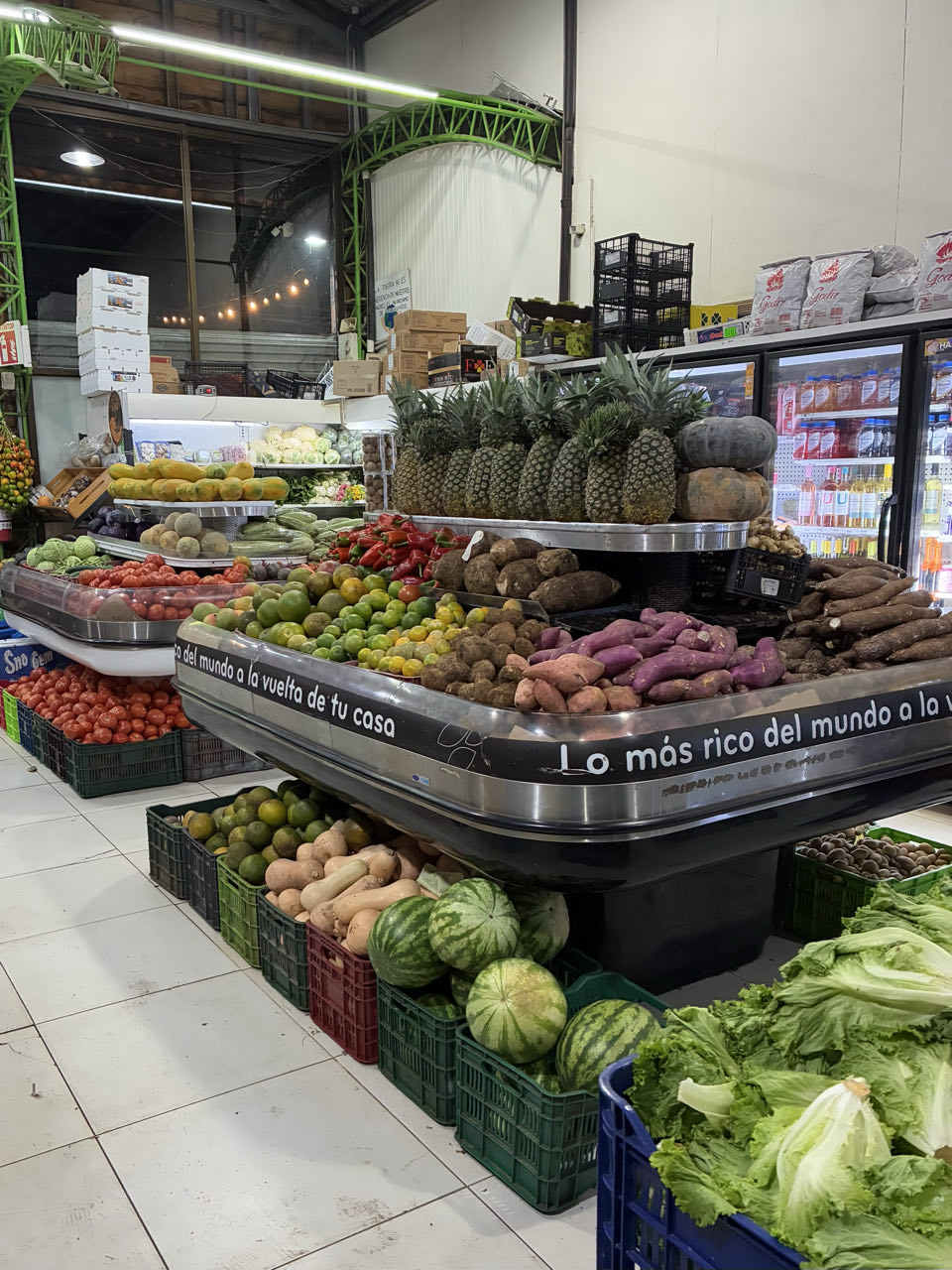 Le restaurant que nous choisissons a une décoration authentique, un arbre est en plein milieu de la salle. Après notre repas, on passe au supermarché. Le rayon fruits et légumes est très bien rempli, on a le nez parfumé des différentes odeurs. On choisit des myrtilles et des bananes.