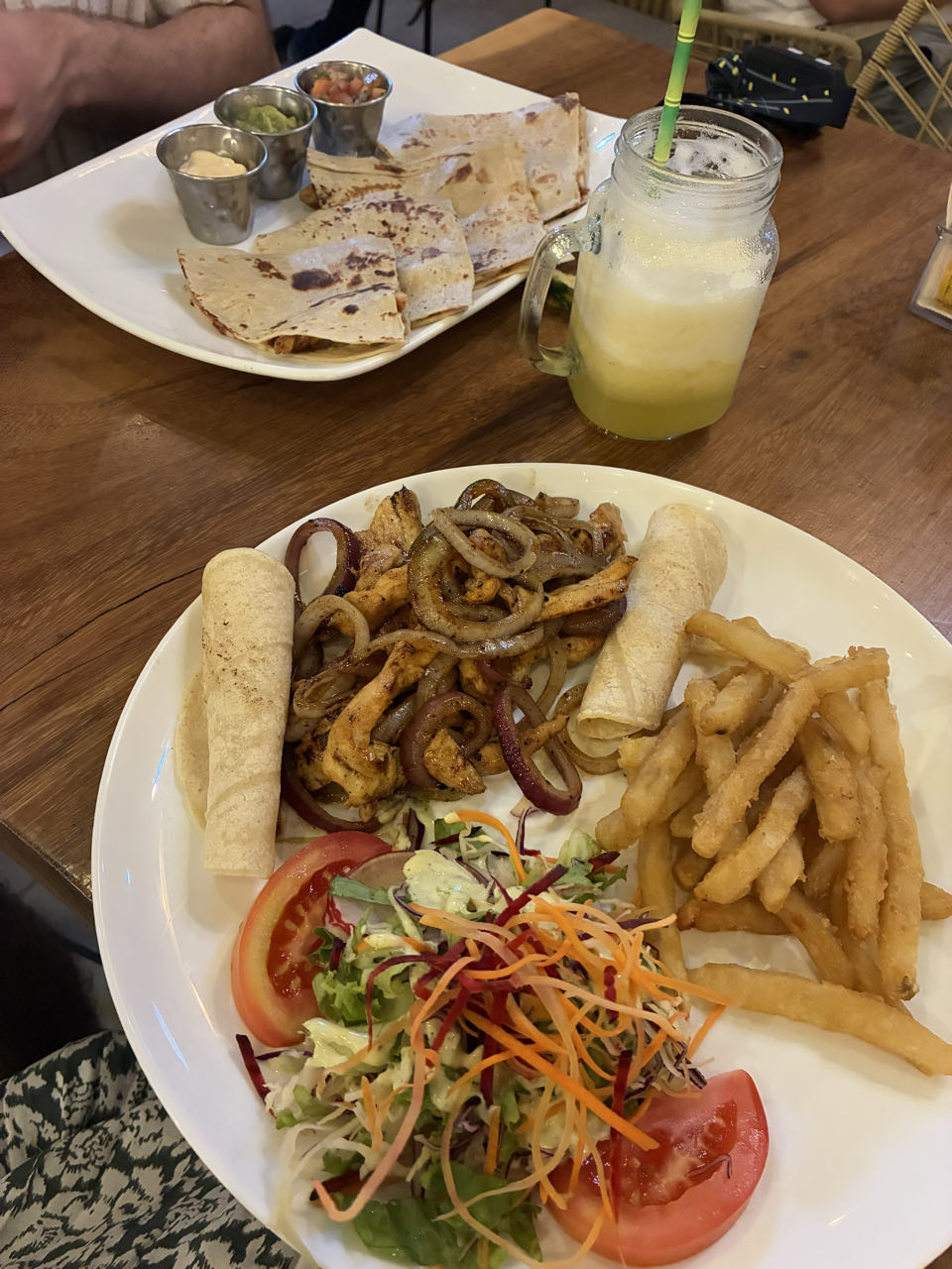 Journée route ! Nous devons parcourir presque 200km pour rejoindre Quepos, soit 4h30 - 5h de route. La moitié du trajet se fait sur la Panaméricaine, ça va vite. À 12h, on commence à apercevoir l’océan Pacifique. On trouve un bon restaurant de poissons au bord de l’eau, dans un petit golfe en retrait de la route.