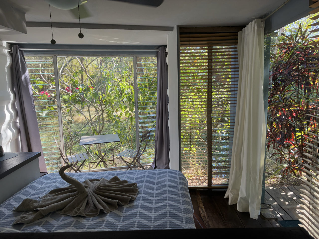 Nous arrivons en début d’après midi dans notre Bed & Breakfast. Il est tenu par un couple de belges flamands, expatriés au Costa Rica depuis 30ans. Ils nous donnent une adresse d’une ranch pour le déjeuner. On boit de bons smoothies avec notre repas !