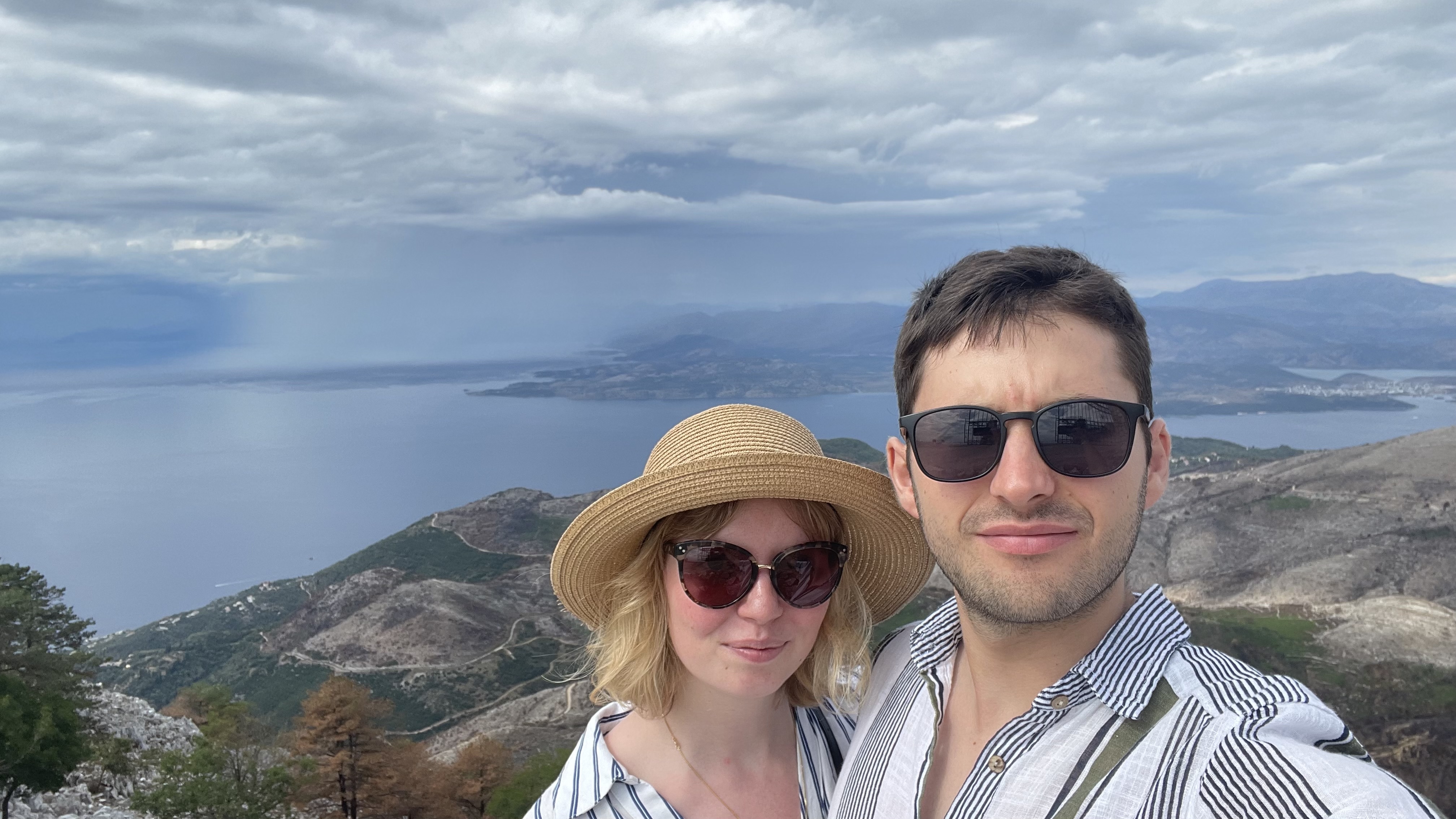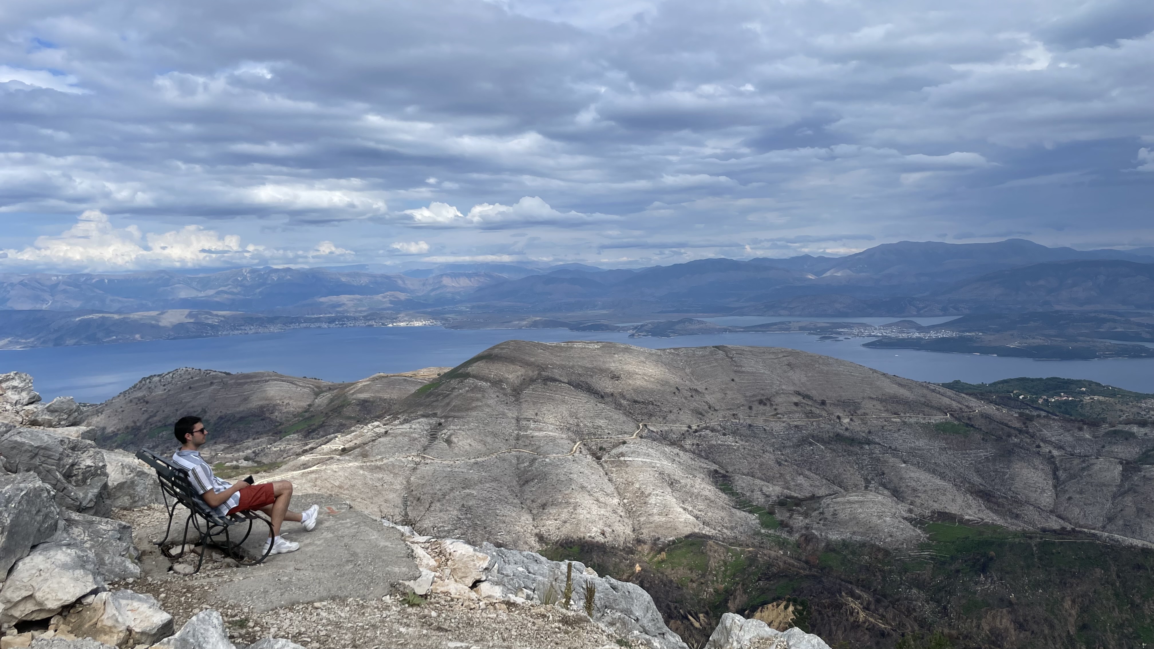 Nous prenons ensuite la route pour le Mont Pantokrator. C’est le plus haut point de l’île qui offre une vue à 360. Les lacets pour arriver au sommet donnent le vertige. On a une superbe vue sur une bonne partie de l’île et sur l’Albanie. Nous reconnaissons même Kerkyra.