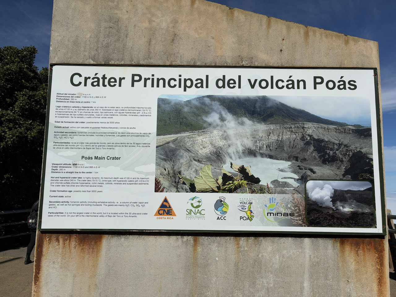 Le contraste avec la nature environnante est saisissant. Rien ne laissait présager un volcan à cet endroit. On observe un beau cratère encore actif avec un lac hyperacide (pH = 1 !) duquel se dégagent des fumerolles de soufre. Sur les zones d’observation, des impacts entourés de peinture jaune sont notés. Ils représentent les dégâts causés par les dernières éruptions volcaniques de 2017.